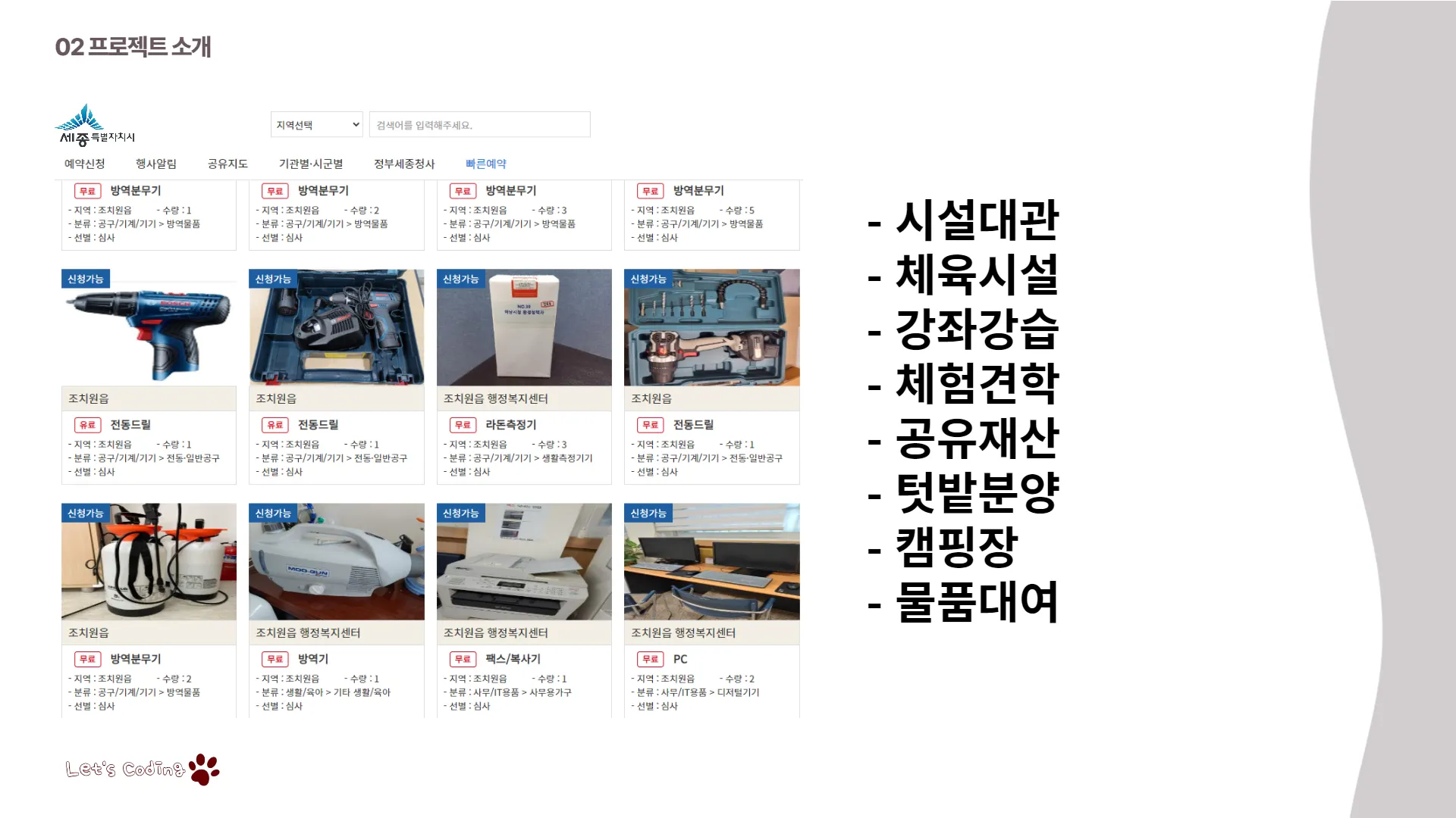 프로젝트 제목( 세종공유서비스 )