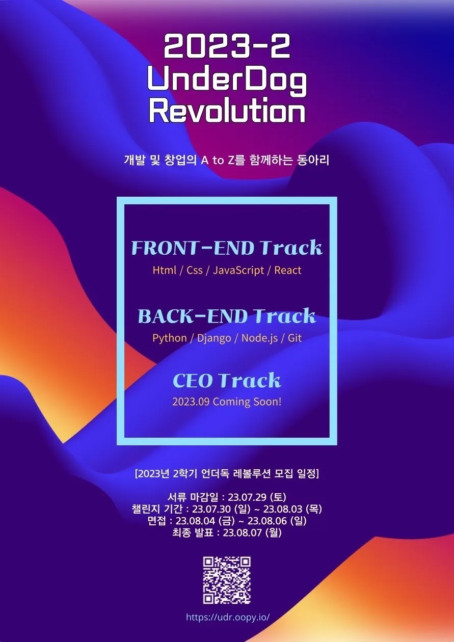 언더독 O.T : 23.09.18(월) 20시 (* 오프라인으로 진행되며, 필수 참여입니다)