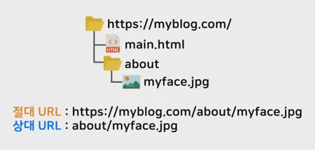 절대 URL(Absolute URL): 접근하는 최초 시작점부터 경유한 경로를 모두 기록하여 리소스의 위치를 나타냄