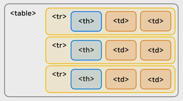 <th>: 표의 행 내부에 제목 셀을 담는 태그