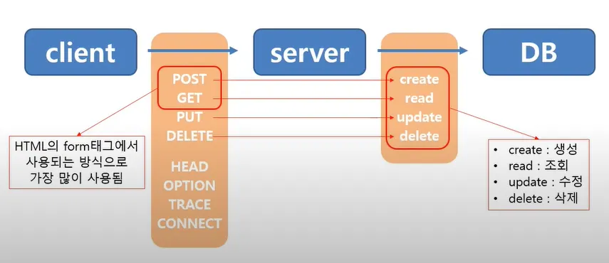 ⇒ POST, GET : HTML의 form태그 지원
