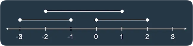 선분이 두 개 이상 겹친 곳은 [-2, -1], [0, 1]로 길이 2만큼 겹쳐있습니다.