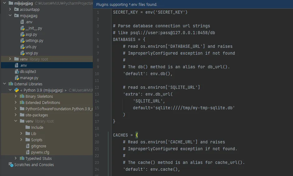 venv/gitignore생성하고 gitbhub/ignore/Global/JetBrains.gitignore