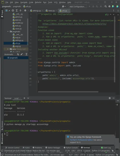 step 1. 앱을 생성한다.  $ python manage.py startapp accountapp