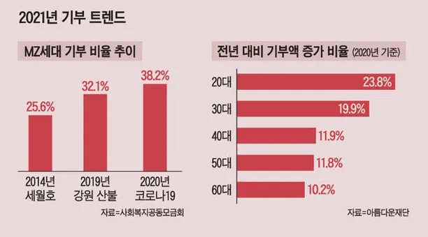 기부를 주도하는 집단으로 MZ세대가 급부상하고 있다!