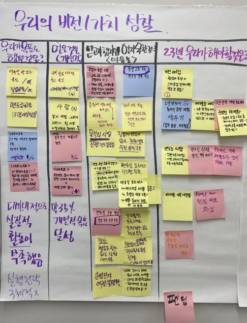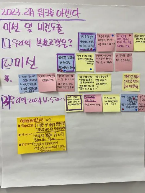 에 대해서 다시금 고민해보는 것이 주가 되었습니다. 여러 질문을 던져가며 재수립한 우리 동아리의 비전과 미션을 공유하려고 합니다.