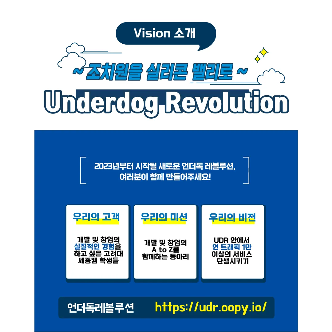 의 주인공이 되어보세요! 함께 노력하고, 발전하는 언더독레볼루션이 되겠습니다.
