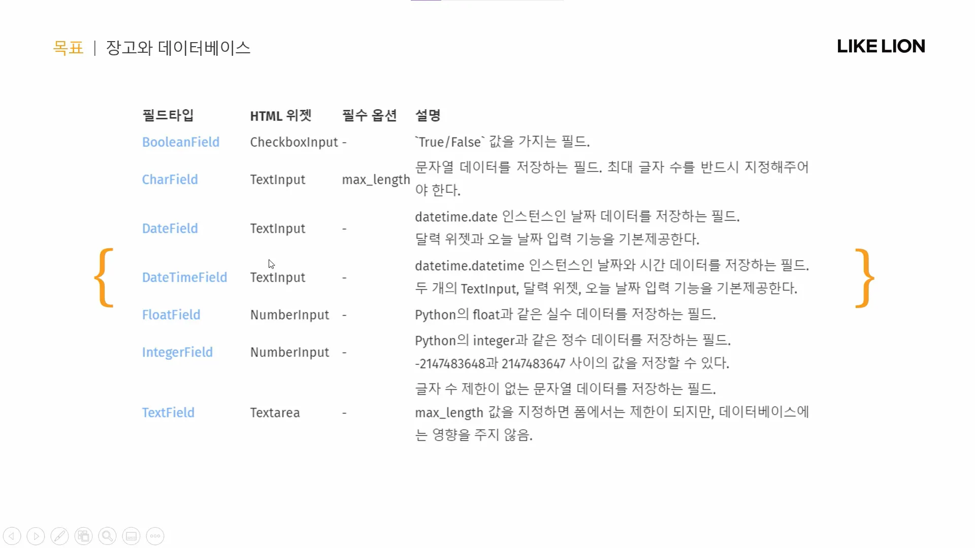 → 제한이 있는 문자열 CharField() 로 정해주고,