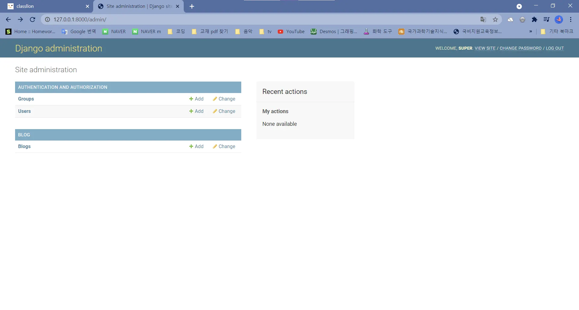 → 페이지 실행시켜서 주소 창에 /admin 치고 들어가면 admin 페이지 나옴