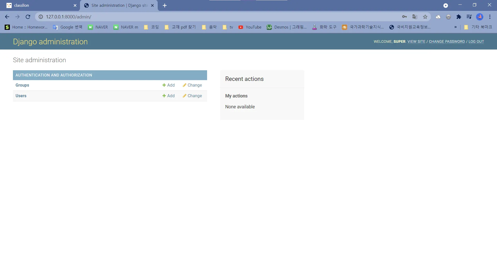 → 이 페이지는 데이터베이스를 관리하므로 관리자 권한을 가진 슈퍼 유저만 사용할 수 있게 함 ... 슈퍼 유저 만듦