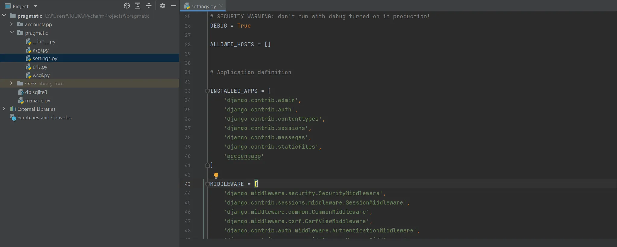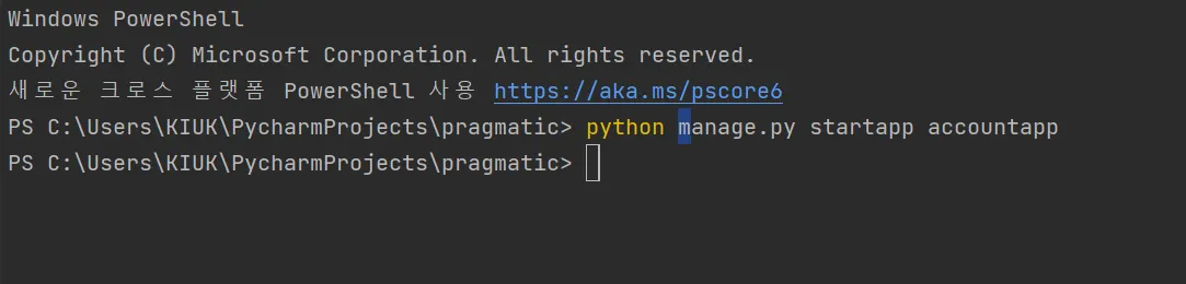 → accountapp 생성