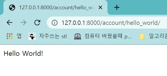 현재는 호스트 주소/account/hello_world로 확인가능