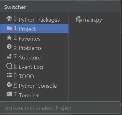 터미널 불러오기 단축키 [ ctrl + shift + tab or 아래 terminal 클릭]