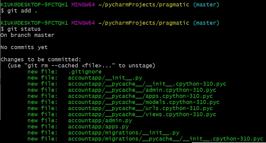 파일들 추적 시작시켜주기 ( gitigonore에서 추적을 하지 않는 파일 제외)