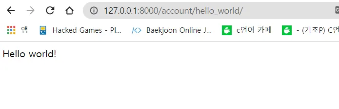 base.html 파일에 body 부분에 Hello world! 를 쳐주면 아까와 같다.